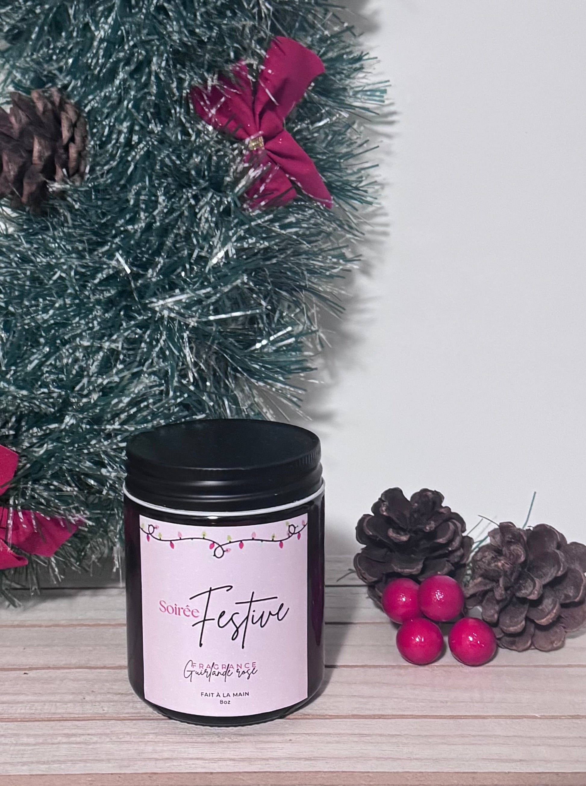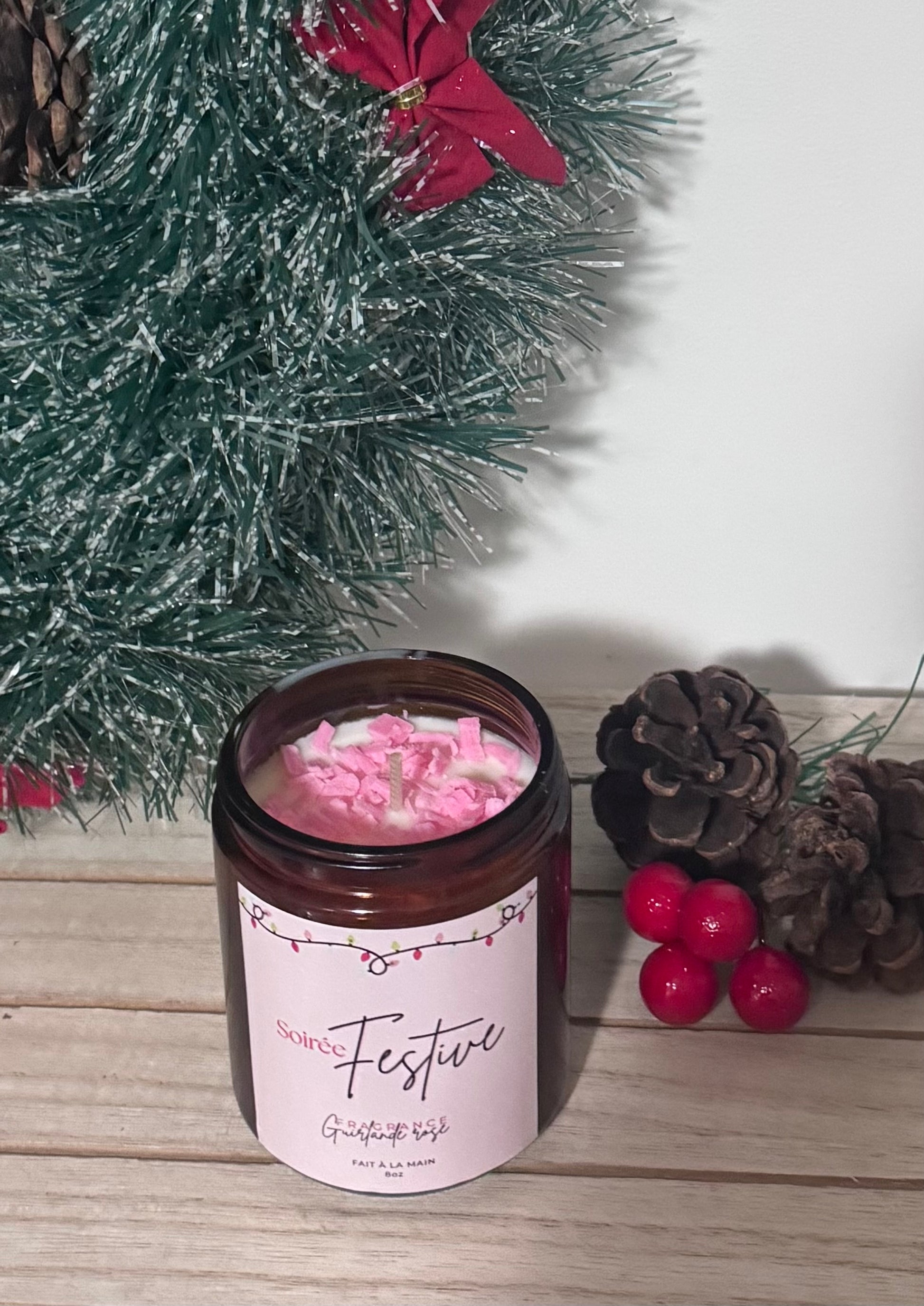 Festive capture la magie de décembre : des baies roses givrées et une touche d’orange, enveloppées d’un cœur chaleureux de grenade et de cannelle.